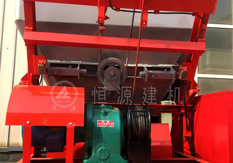 JS500混凝土攪拌機(jī)上料系統(tǒng)由卷?yè)P(yáng)機(jī)構(gòu)、上料架、料斗、進(jìn)料嘴等部件組成。