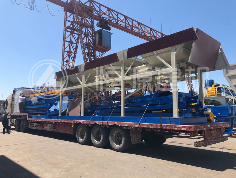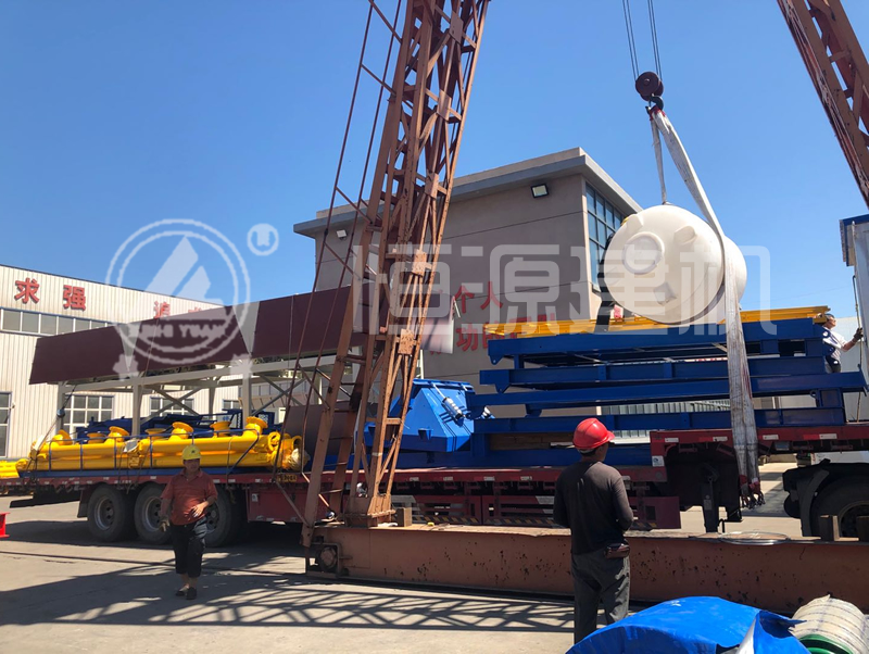 恒源建機(jī)90型免基礎(chǔ)攪拌站正在裝車中