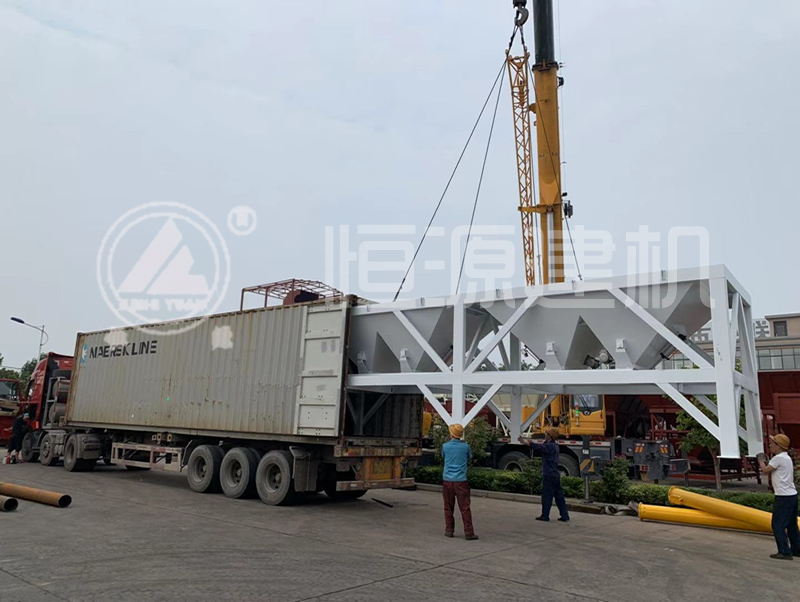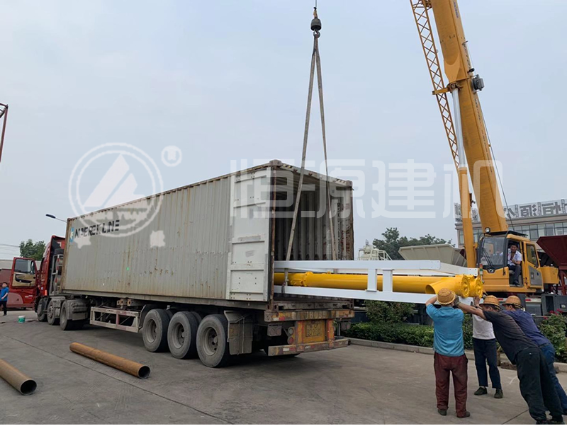 鄭州恒源建機免基礎(chǔ)雙180攪拌站正在裝車中