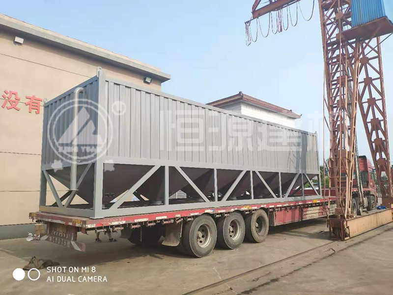 鄭州恒源建機(jī)在這炎熱的天氣里,裝車班師傅發(fā)貨不停歇, 80T臥式水泥倉 裝車中 臥式水泥倉為方形,底部由數(shù)條支腿支撐,出料錐體為方形錐體,倉體為瓦楞板和型材組成的框架焊接