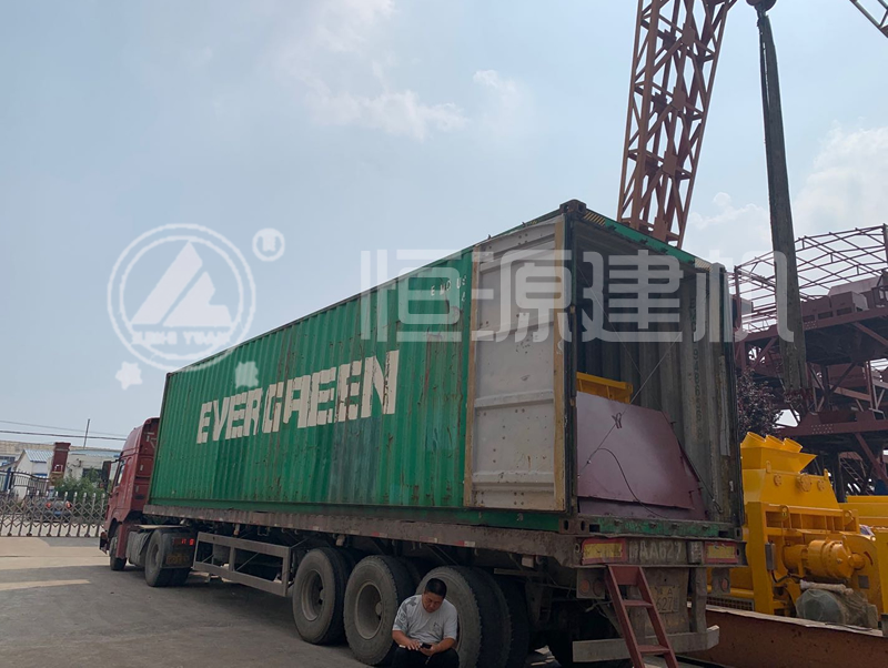鄭州恒源建機(jī)免基礎(chǔ)攪拌站正在裝車中