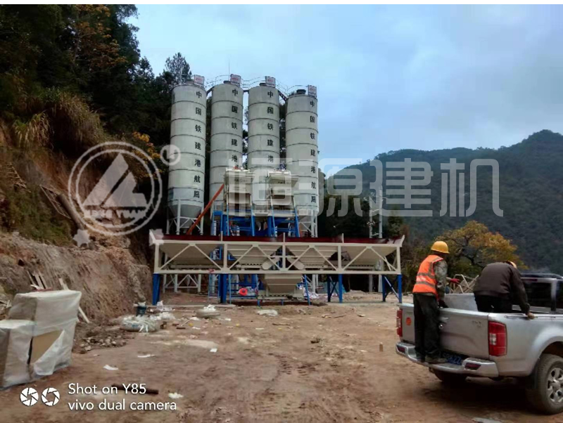 鄭州恒源建機發(fā)往福建連體50站現(xiàn)場試機中 鄭州恒源建機 連體50混凝土攪拌站 指的是兩臺js1000攪拌機、一套PLD1600配料機、水泥倉及相應的螺旋輸送機,兩臺水、水泥稱量,一套控制系